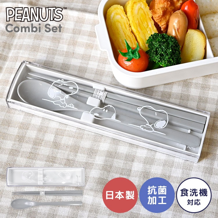 スヌーピー SNOOPY 箸 スプーン セット 箸箱セット コンビセット スライド式 18cm 日本製 抗菌 食洗機対応 コンパクト スリム 弁当用 キャラクター シンプル かわいい おしゃれ 大人 子供 女の子 男の子 小学生 中学生 高校生 通勤 通学 遠足 学校 給食 新学期 グレー