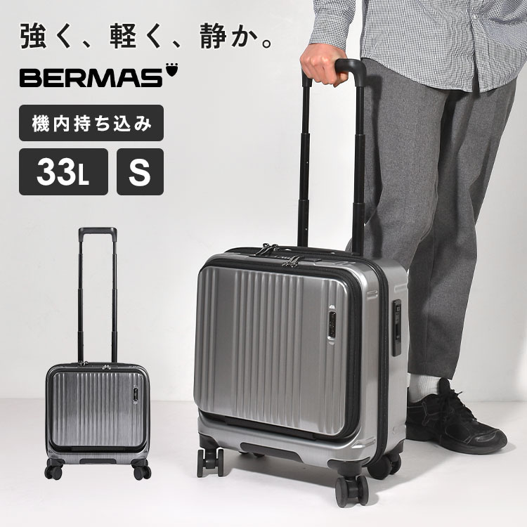 キャリーケース BERMAS バーマス 機内持ち込み フロントオープン Sサイズ インターシティ 4輪 39c ビジネス スーツケース ストッパー 仕事 フロントポケット 前ポケット PC 書類 出張 静音 キャスター ダイヤル式 TSロック USBポート 充電 YKK製 ファスナー 軽量 33L 保