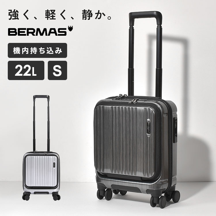 キャリーケース BERMAS バーマス 機内持ち込み フロントオープン sサイズ インターシティ コインロッカー 38c フロントポケット ストッパー 1泊 ビジネス スーツケース PC 書類 出張 静音 キャスター ダイヤル式 TSロック USBポート 軽量 22L 保証 LCC機内持ち込 2.8k
