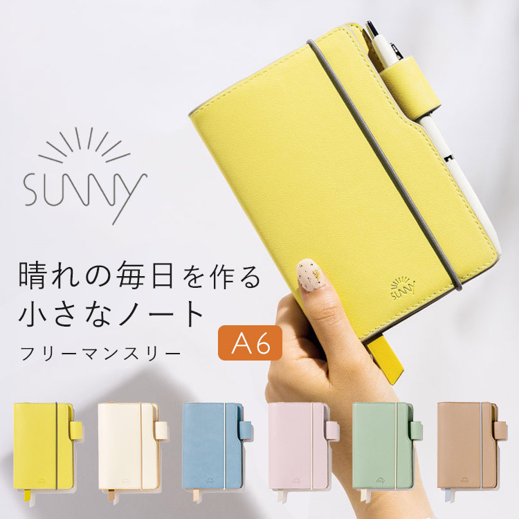 手帳 SUNNY サニー A6 マンスリー バンド ダイアリー スケジュール帳 メモ 多機能 日付なし 方眼 ノート 仕事 管理 ブロック カレンダー 大人 女性 女子 おしゃれ かわいい シンプル フリーマンスリー 文具 イエロー ホワイト ブルー パープル 持ち歩き 日本製 いろは出版