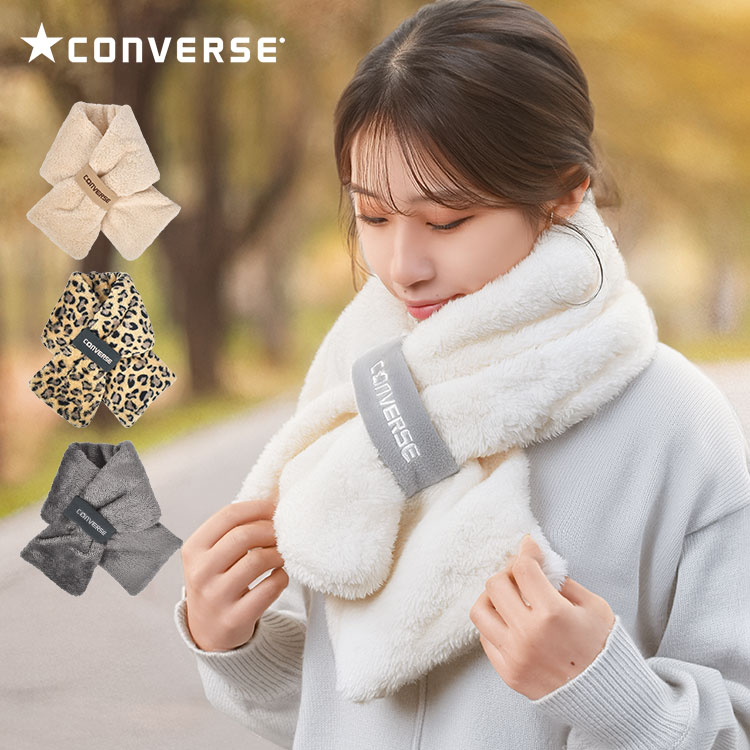 マフラー レディース 差し込み コンバース ボア 防寒 あったか converse ファー ネックウォーマー おしゃれ かわいい ブランド カジュアル 差し込みマフラー ベージュ グレー ホワイト ヒョウ柄 レオパード 通勤 通学 女性 女子 彼女 誕生日 プレゼント クリスマス ギフト