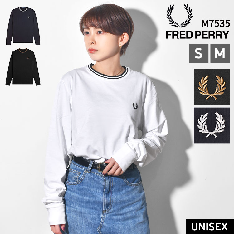 Fred Perry フレッドペリー M9602 Long Sleeve Twin Tipped T-Shirt ロンT ロングスリーブ Tシャツ 正規品 レディース メンズ ユニセックス トップス 長袖 カットソー クルーネック ワンポイント シンプル おしゃれ 大人 コットン S M ネイビー ブラック ホワイト 紺 黒 白