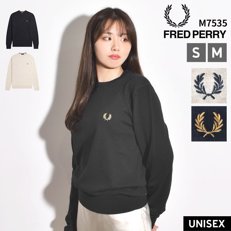 Fred Perry フレッドペリー M7535 Crew Neck Sweatshirt スウェット トレーナー 正規品 レディース メンズ ユニセックス 長袖 トップス クルーネック ワンポイント ロゴ 刺繍 シンプル おしゃれ 大人 裏毛 丈夫 保温 S M ブラック ネイビー グリーン アイボリー エクリュ