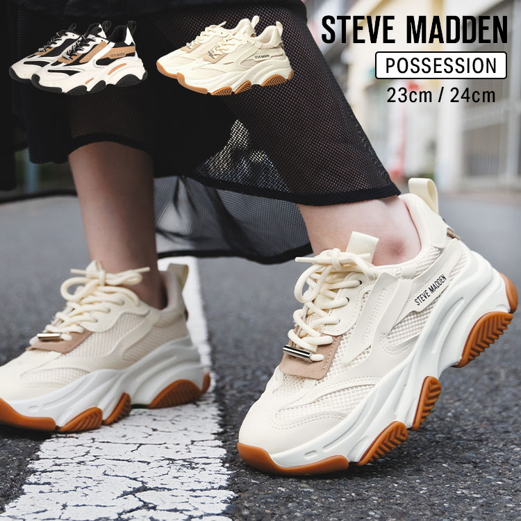 スニーカー スティーブマデン SteveMadden レディース 厚底 23cm 24cm POSSESSION ボリュームソールスニーカー シューズ 靴 海外ブランド きれいめ おしゃれ シンプル 黒 ブラック ベージュ 白 ホワイト メッシュ ローカット カジュアル ストリート 身長アップ 脚長 女性
