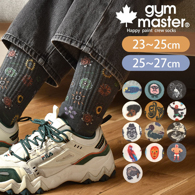 靴下 メンズ レディース gym master ジムマスター 柄 クルー丈 かわいい 個性的 おもしろ ユニーク 可愛い 派手 おしゃれ 厚手 綿 丈夫 23cm 24cm 25cm 26cm 27cm クルーソックス リブソックス スニーカーソックス 裏パイル アウトドア ブランド 男性 女性 プレゼント ギフト
