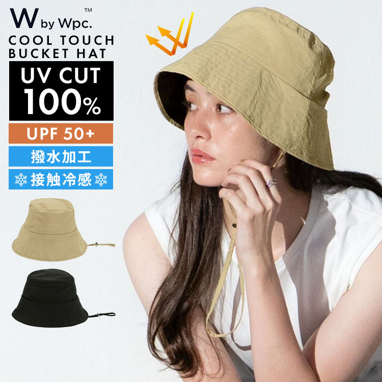 UVカット 帽子 Wpc. レディース バケットハット 遮光100% 完全遮光 UPF50+ 接触冷感 撥水 つば広 あご紐付き サイズ調整 飛ばない 涼しい 軽量 洗える 紫外線対策 折りたたみ コンパクト 持ち運び 自転車 通勤 野外 屋外 作業 春 夏 おしゃれ シンプル ブラック ベージュ