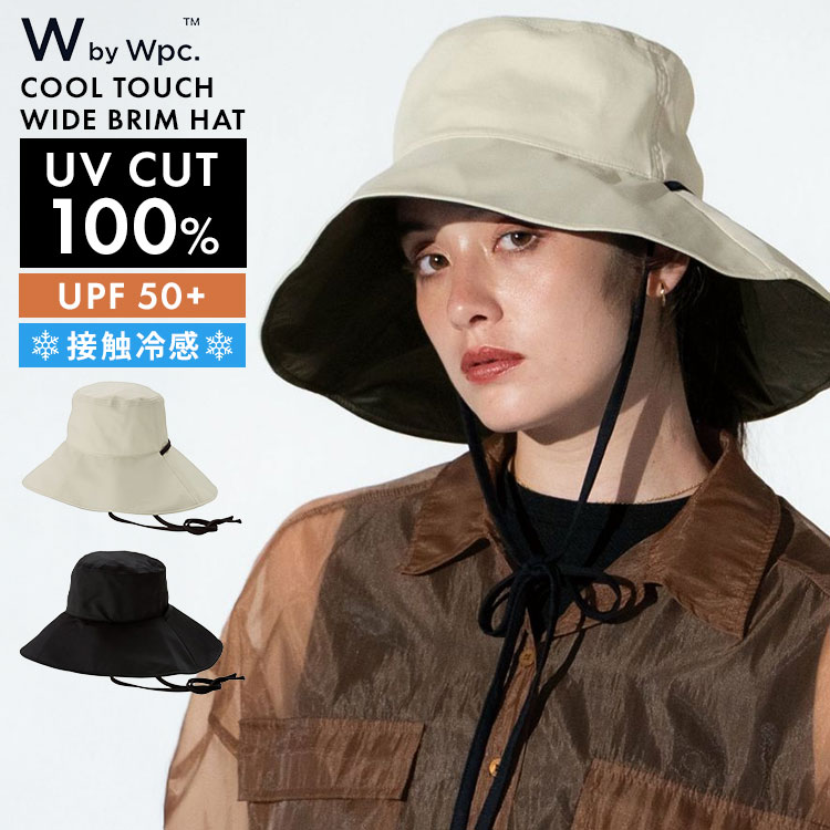 帽子 UVカット Wpc. レディース UVハット 春 夏 つば広 遮光100% 完全遮光 UPF50+ 接触冷感 サイズ調整 あご紐付き 速乾 飛ばない 軽量 洗える つば長 ワイヤー入り かぶる日傘 日よけ帽子 紫外線対策 日焼け防止 自転車 通勤 散歩 ガーデニング おしゃれ ブラック ベージュ