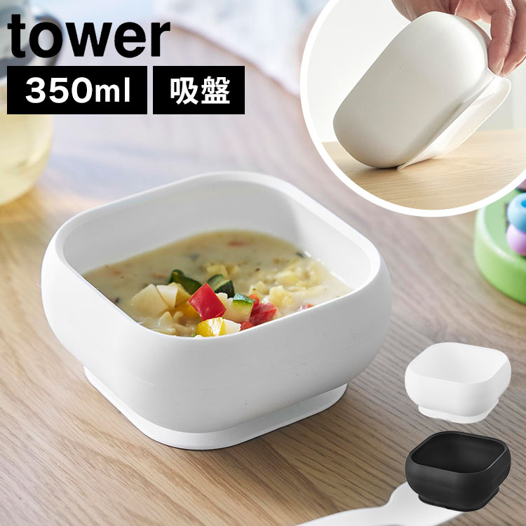 吸盤付きシリコーンベビーフードボウル タワー 山崎実業 ベビー お皿 吸盤 ひっくり返らない ベビー食器 皿 ボウル すくいやすい 離乳食 お食事ボウル 食洗機対応 電子レンジOK ホワイト ブラック 10047 10048 公式 tower 赤ちゃん 男の子 女の子 出産祝い 耐熱 シリコン