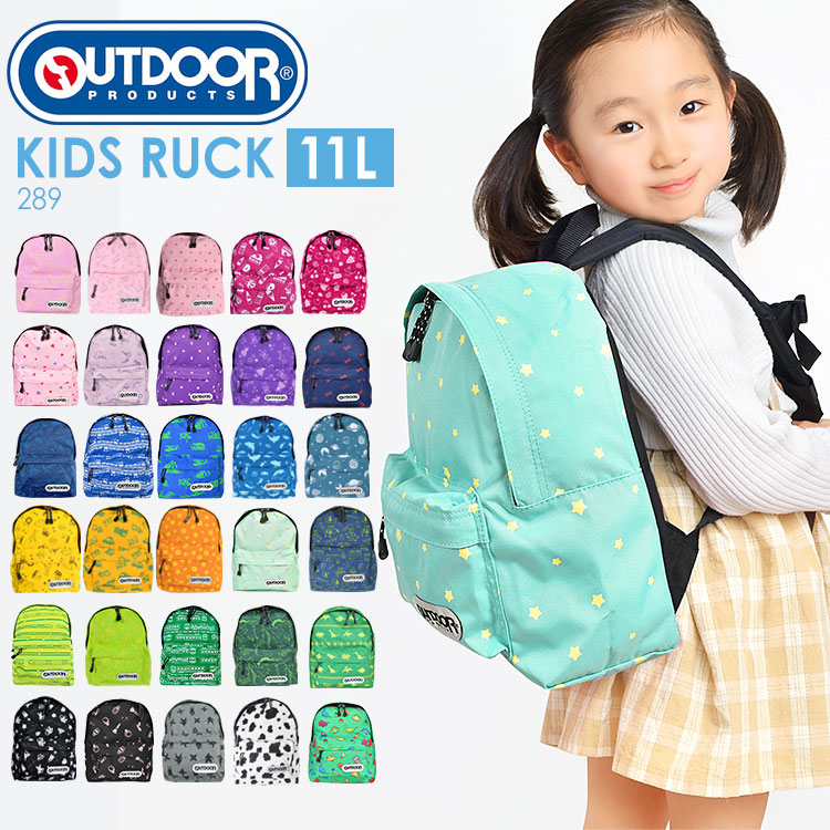 リュック キッズ OUTDOOR PRODUCTS アウトドアプロダクツ 女の子 男の子 小学生 幼稚園 保育園 289 11L ハーネス付き 軽量 キッズリュック リュックサック ブランド 子供 通園 通学 遠足 学童 低学年 カラフル 電車 柄 黒 星 ピンク ジュニア かわいい おしゃれ