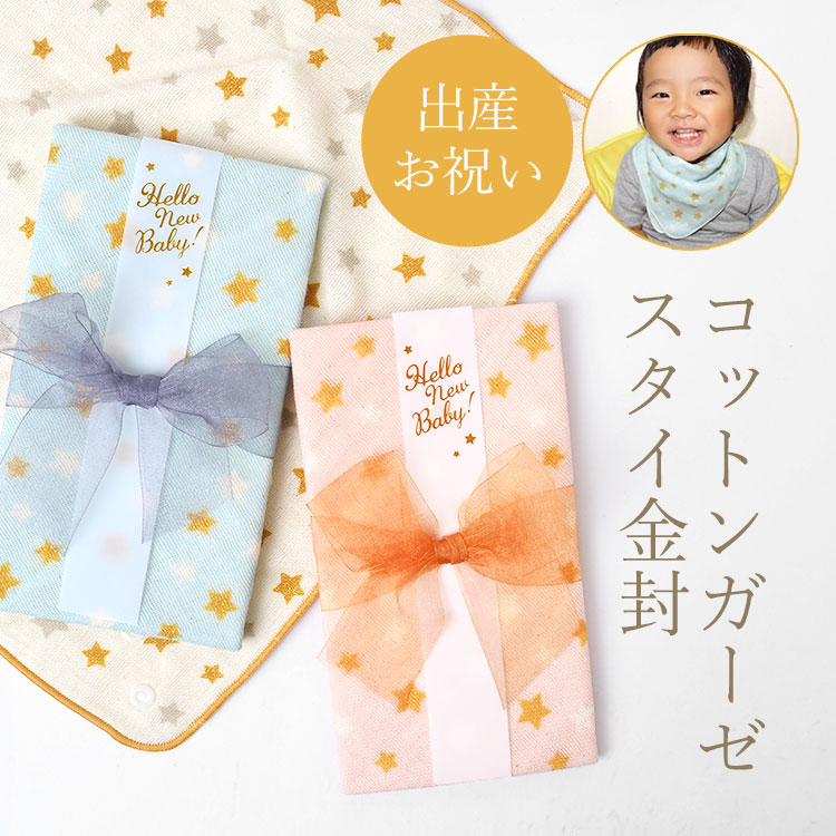 ガーゼスタイ オーガニックコットン お祝い 出産祝い 金封 ご祝儀袋 ハンカチ スタイ 綿100% 日本製 ベビー ガーゼスタイ金封 おしゃれ 男の子 女の子 星柄 スター柄 リボン ブルー ピンク イエロー コットン スタイとして使える よだれかけ 出産 祝い 赤ちゃん プレゼン