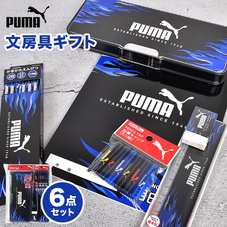 PUMA プーマ 文房具 セット 男の子 文具セット 6点 小学校 入学準備 小学生 1年生 低学年 男子 子供 キッズ ステーショナリーセット 筆箱 両面開き 鉛筆 2B 消しゴム 鉛筆キャップ 定規 15cm 自由帳 筆記具 新入学 卒業 卒園 進級 新学期 ギフトセット ギフト プレゼント