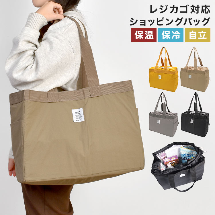 ヘンリースタジオ レジカゴバッグ レジかご型 ショッピングバッグ エコバッグ 自立 大容量 マチ広 保冷 保温 撥水 ナイロン 軽量 丈夫 折りたたみ たためる 肩掛け 大きめ 巾着 シンプル 無地 おしゃれ レジバッグ 買い物 バッグ マイバッグ 買い物かご ブラック グレー