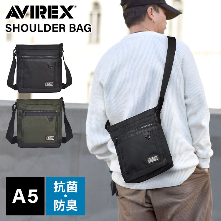 ショルダーバッグ AVIREX アビレックス アヴィレックス ソリッド AX2055 メンズ ブランド 斜めがけバッグ 軽い A5 抗菌 防臭 薄型 縦型 小さめ ナイロン ペットボトル入る ポケット多い ミリタリー かっこいい シンプル 黒 ブラック カーキ 丈夫 大人 男性 鞄 メンズバッグ