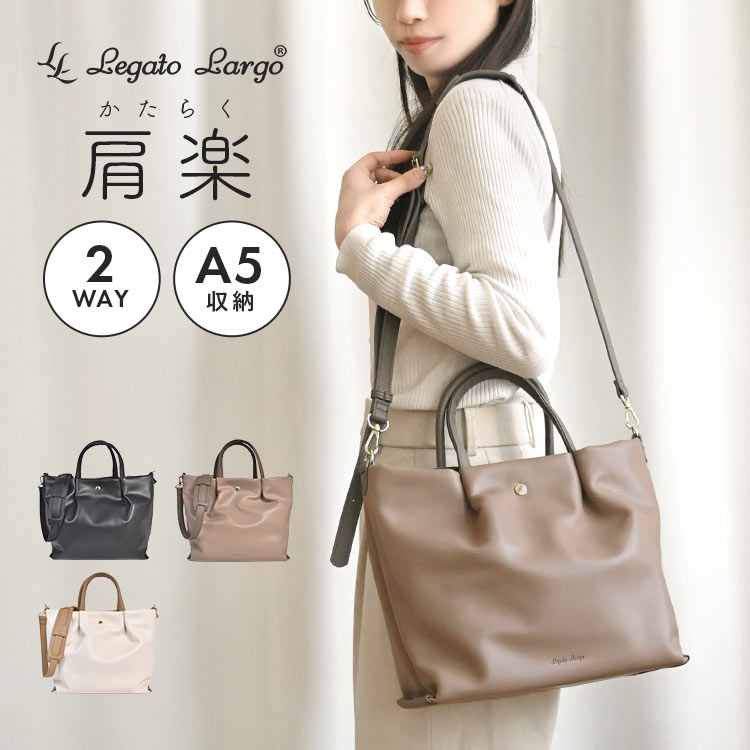 ショルダーバッグ Legato Largo レガートラルゴ 肩楽 レディース 2WAY 合皮 斜めがけ バッグ かばん ファスナー 斜め掛け 肩掛け 軽い 軽量 小さめ A5 おしゃれ かわいい シンプル 上品 きれいめ 大人 女性 OL 通勤 通学 ブラック グレーベージュ アイボリー 黒 グレージュ