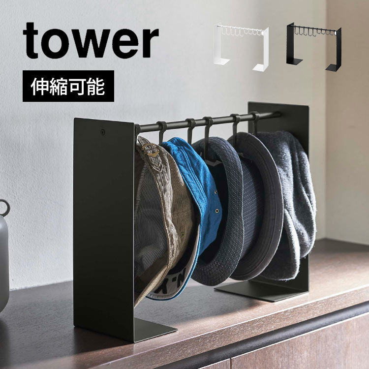 帽子収納スタンド タワー 山崎実業 6127 6128 tower 収納ケース 吊り下げ 帽子掛け 整理整頓 隙間収納 見せる収納 省スペース 付け外し自在 フック 10個 横幅 調節 伸縮 ハット 型崩れ防止 ホワイト ブラック 耐荷重2.5kg クローゼット 玄関 棚上 シンプル おしゃれ スマート