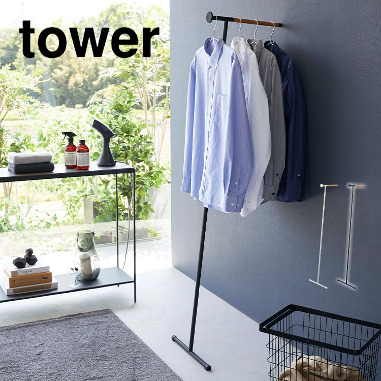 衣類スチーマーアイロン掛けハンガー タワー 山崎実業 5972 tower コートハンガー 木製 ハンガーラック 北欧 洋服掛け カバン掛け スリム コンパクト 上着 コート 収納 壁 立てかけ ラック おしゃれ シンプル 玄関収納 ハンガーにかけたまま リビング