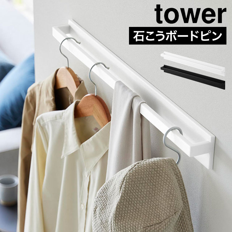 ハンガーラック 石こうボードピン 壁面収納 山崎実業 タワー tower 壁付けちょい干しハンガー 10387 10388 公式 ホワイト ブラック コンパクト ハンガー シンプル おしゃれ 一時置き 一時掛け 室内干し 物干し 洗濯物干し ランドリー ハンガー掛け 省スペース スタイリッシュ
