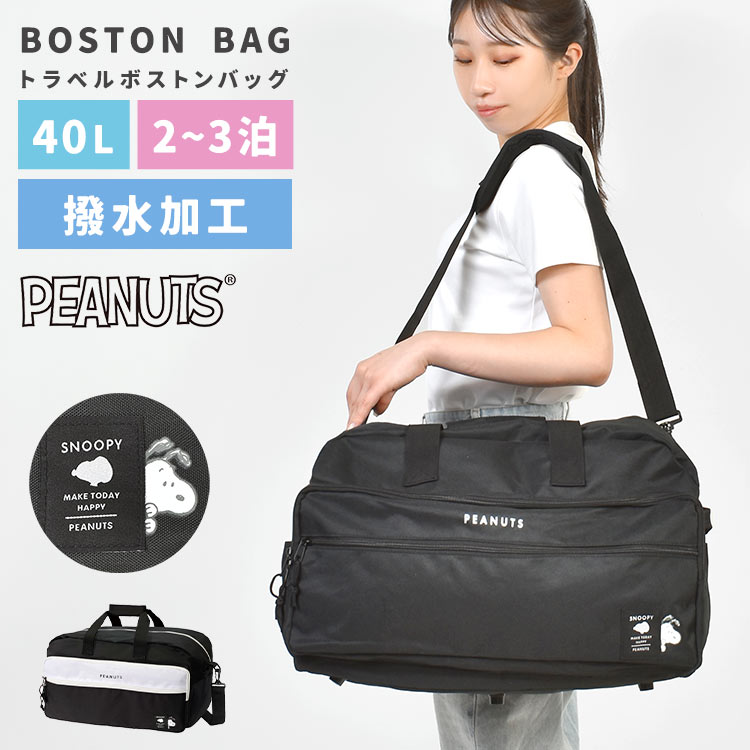ボストンバッグ SNOOPY スヌーピー 修学旅行 小学生 女の子 2泊3日 中学生 大容量 軽量 斜めがけ 2way 40L 林間学校 旅行かばん キャラクター トラベルバッグ 旅行 ショルダーバッグ キッズ 軽い 黒 合宿 高学年 3泊 レディース 子供 ブラック 撥水 遠征 かわいい おしゃれ