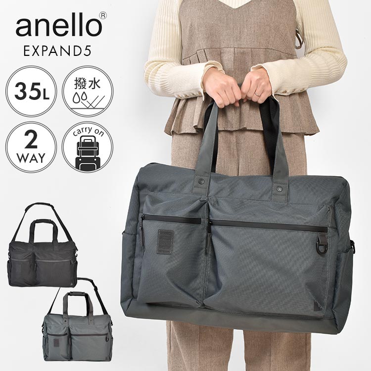 anello アネロ ボストンバッグ 35L ブランド レディース メンズ 大容量 軽量 撥水 防水 2way ショルダーストラップ 付き 旅行 出張 ビジネス 修学旅行 林間学校 合宿 スポーツ ジムバッグ 入院 1泊2日 2泊3日 キャリーオン 機内持ち込み 大人 おしゃれ 黒 ブラック グレー