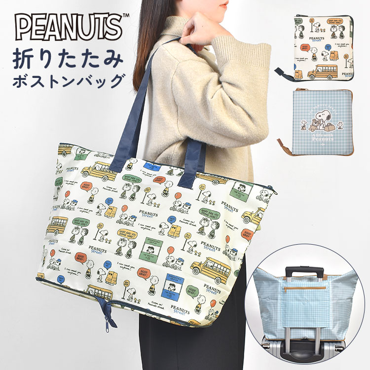 折りたたみ ボストンバッグ スヌーピー SNOOPY 折り畳みバッグ 大容量 21L 軽量 大きめ 旅行 トラベル サブバッグ キャリーオン キャリーケース 取り付け 荷物 かばん マチ広 底板付き コンパクト 予備 買い物 エコバッグ キャラクター グッズ おしゃれ かわいい