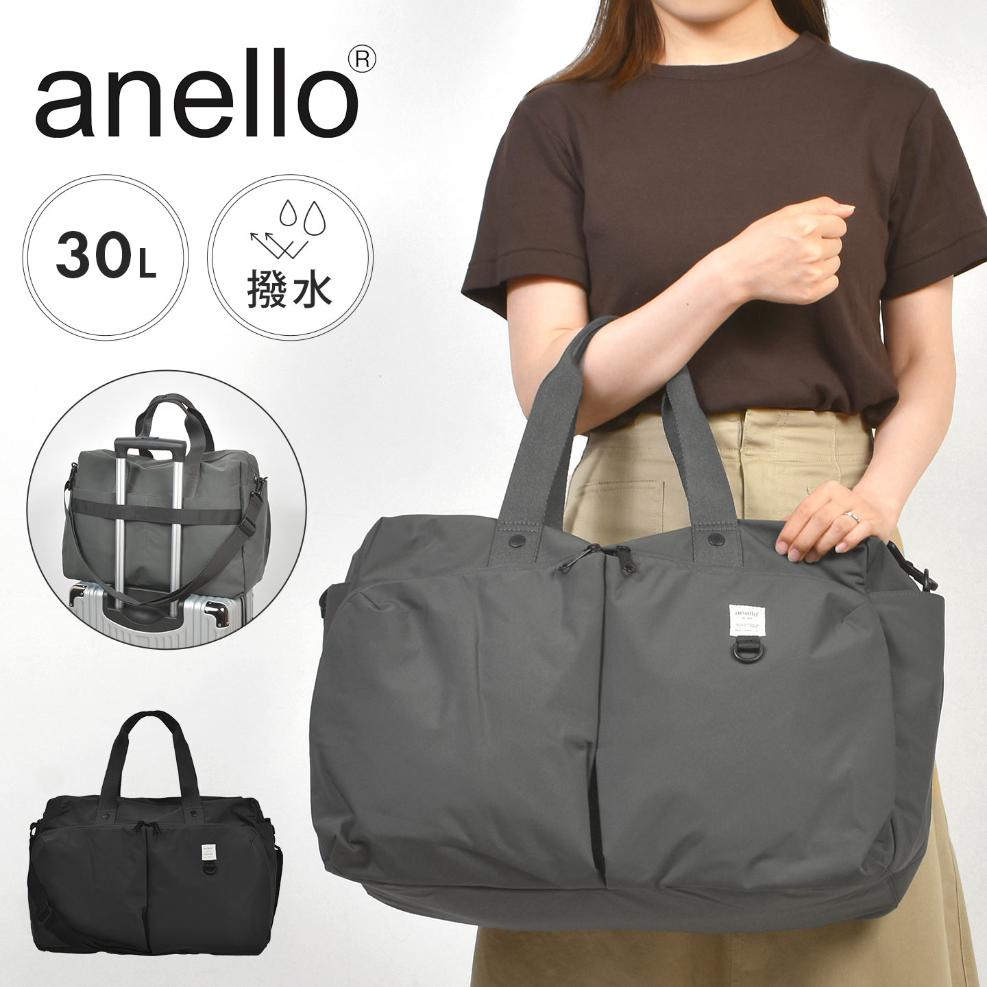 ボストンバッグ anello アネロ レディース メンズ 旅行 出張 修学旅行 林間学校 1泊 2泊 軽量 30L 大容量 撥水 多機能 キャリーオン ジムバッグ ショルダーバッグ カバン 機内持ち込み おしゃれ シンプル 無地 ブランド 女性 男性 黒 ブラック グレー
