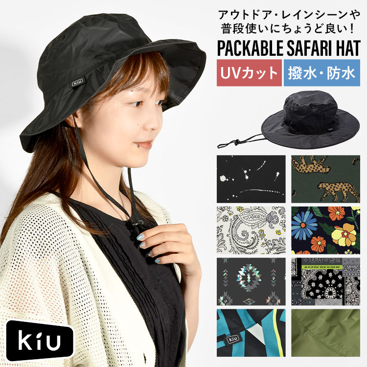 サファリハット kiu キウ メンズ つば広 レディース 夏 大 61cm 帽子 レインハット 大きめ 撥水 防水 UVカット 紫外線対策 洗える 折りたたみ コンパクト あご紐 黒 カーキ 個性的 派手 花柄 登山 旅行 アウトドア 春 レジャー 野外フェス 自転車 かわいい おしゃれ