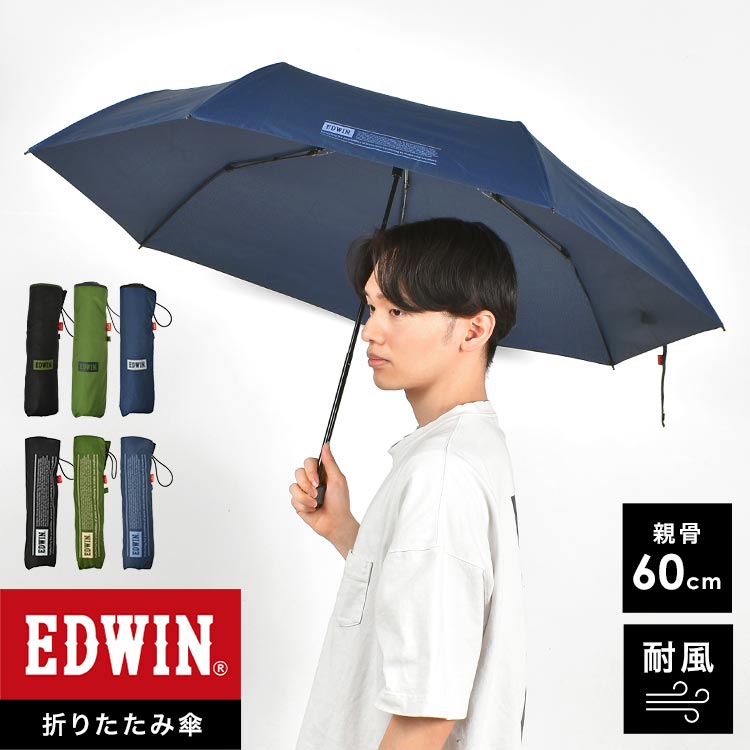 折りたたみ傘 メンズ 軽量 丈夫 EDWIN エドウィン 折り畳み傘 コンパクト 風に強い 強風に強い 傘 耐風傘 60cm 黒 紺 ブラック ネイビー オリーブ カーキ 大きい 大きめ かさ 中学生 高校生 黒 紳士傘 通勤 通学 シンプル おしゃれ 男女兼用 雨傘 折傘 頑丈 女性 男性 男子