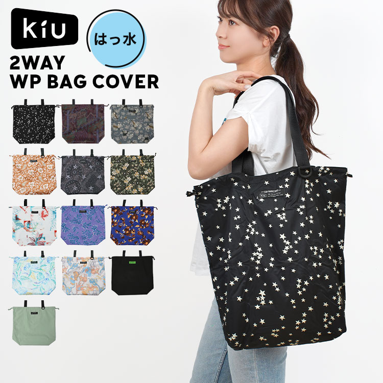 レインバッグカバー KiU キウ K444 レディース メンズ A4 大容量 撥水 防水 雨除け 2way パッカブル コンパクト Dカン付き 軽量 レインカバー カバン 雨対策 トートバッグ エコバッグ サブバッグ 巾着 雨具 猫 花柄 個性的 ブラック おしゃれ かわいい 通勤 旅行 アウトドア