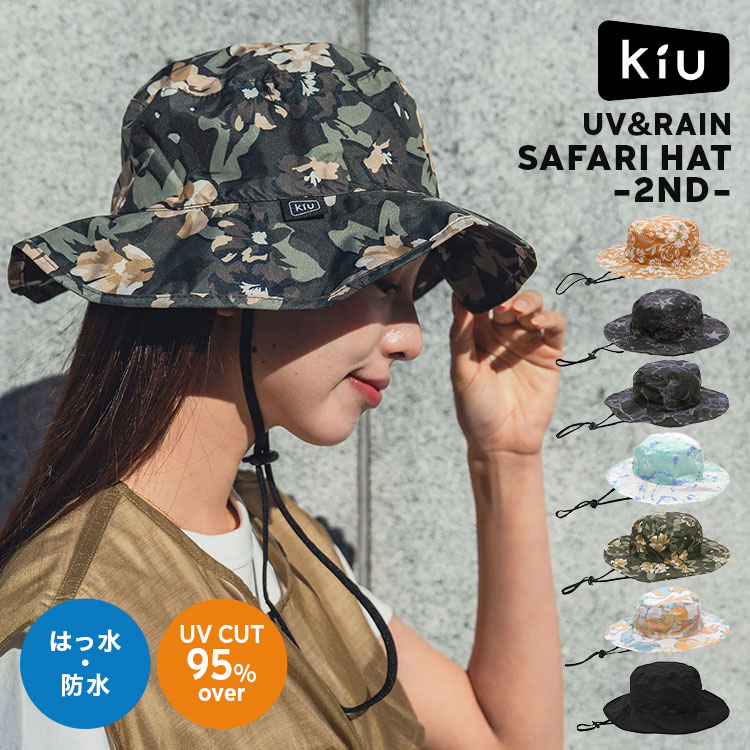 サファリハット KiU キウ K428 レディース メンズ つば広 大きめ UPF50+ 撥水 防水 サイズ調整 UVカット 洗える 折りたたみ コンパクト 通気性 メッシュ 軽量 あご紐付き 日よけ 帽子 UVハット レインハット ブラック 花柄 おしゃれ 個性的 夏 アウトドア フェス 自転車 梅雨