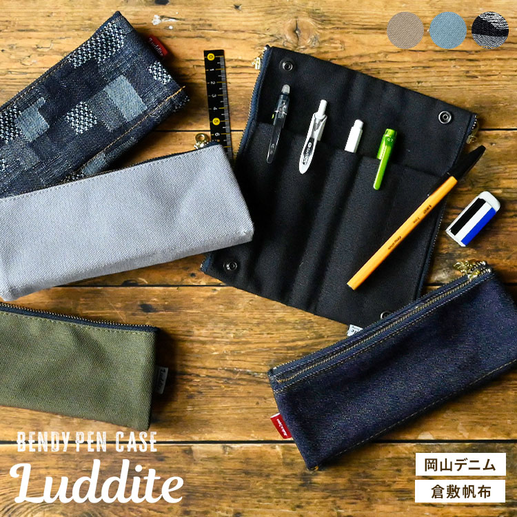 ラダイト LUDDITE ベンティケース ペンケース 岡山デニム パッチワーク デニム 8号 帆布 二つ折り ペンポーチ ペントレイ ふで箱 シャープペン ペン入れ 無地 シンプル 丈夫 大容量 中学生 高校生 大人 ブラック カーキ グレー 黒 おしゃれ かっこいい 小物収納