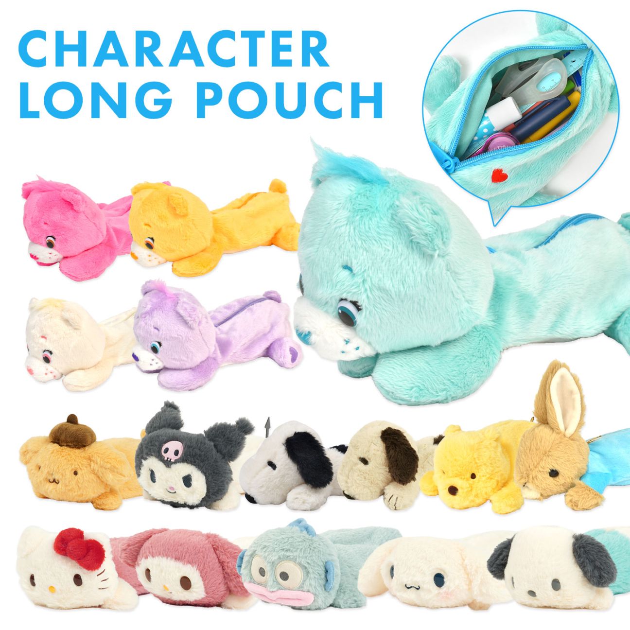 ぬいぐるみ ペンケース キャラクター ポーチ 筆箱 プーさん スヌーピー サンリオ ピーターラビット ケアベア 女子高生 小物入れ 女子 学生 誕生日 プレゼント 女の子 女子高生 ロングポーチ ぬいぐるみペンケース ペン入れ 通学 中学生 高校生 癒し ギフト かわいい ふわふわ