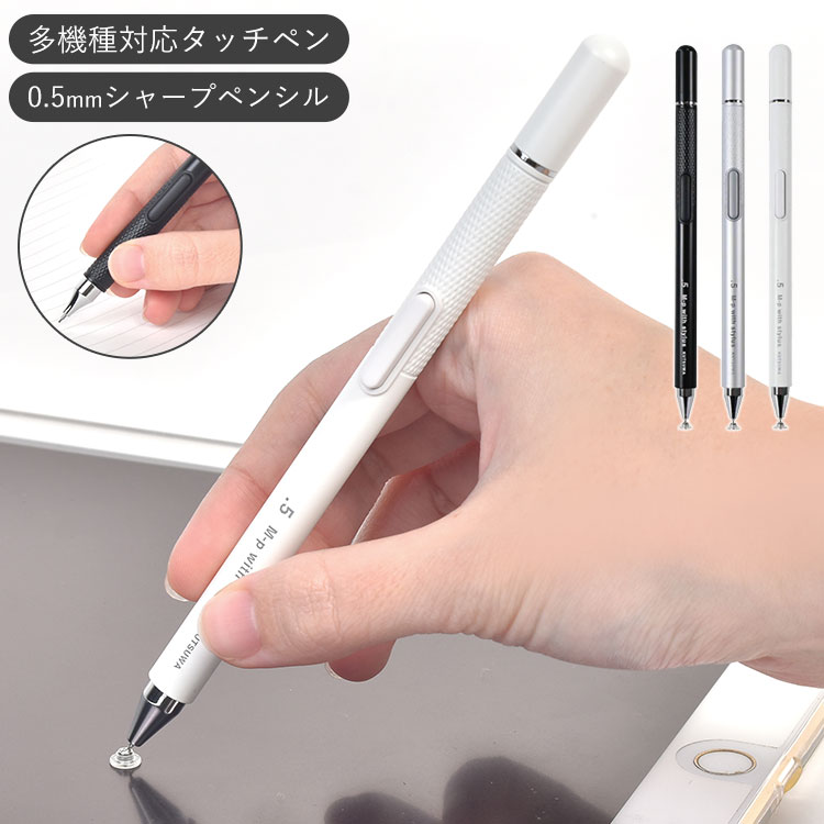 タッチペン サイドノック シャープペンシル 2Way 0.5mm 細い ディスク 低重心 iPad スマホ タブレット iPhone Android 多機種対応 充電不要 接続不要 スタイラスペン 書きやすい メモ ゲーム 勉強 イラスト お絵描き 中学生 高校生 大人