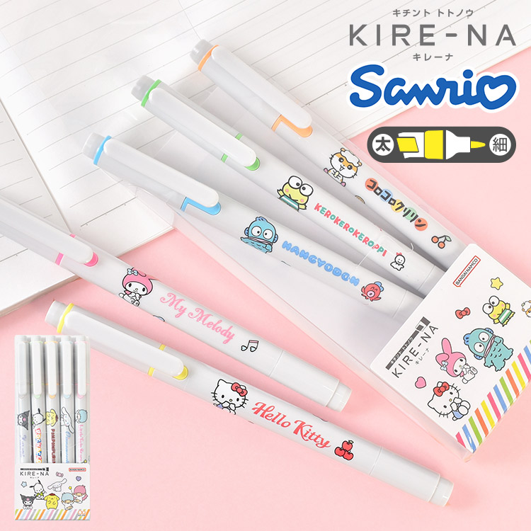 サンリオ 蛍光ペン キレーナ KIRE-NA パイロット PILOT かわいい おしゃれ 5本 5色 セット にじまない 水性 速乾 ラインマーカー ピンク 黄色 緑 淡い 女子 高校生 中学生 文房具 筆記具 ハローキティ ポムポムプリン シナモロール ポチャッコ クロミ マイメロディ キキララ