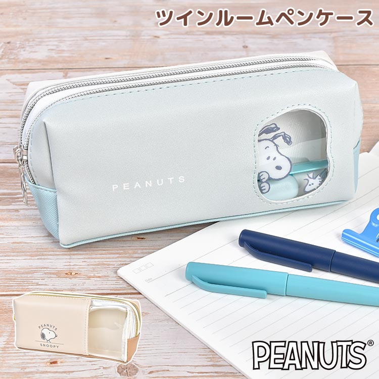 スヌーピー SNOOPY ペンケース ツインファスナー 2ルーム 大容量 box型 筆箱 ペンポーチ ペン入れ 小物入れ 文具 仕切り マチ付き 便利 キャラクター シンプル おしゃれ 可愛い かわいい 中学生 高校生 小学生 高学年 女子 女の子 子供 メイクポーチ 水色 ブルー ブラウン