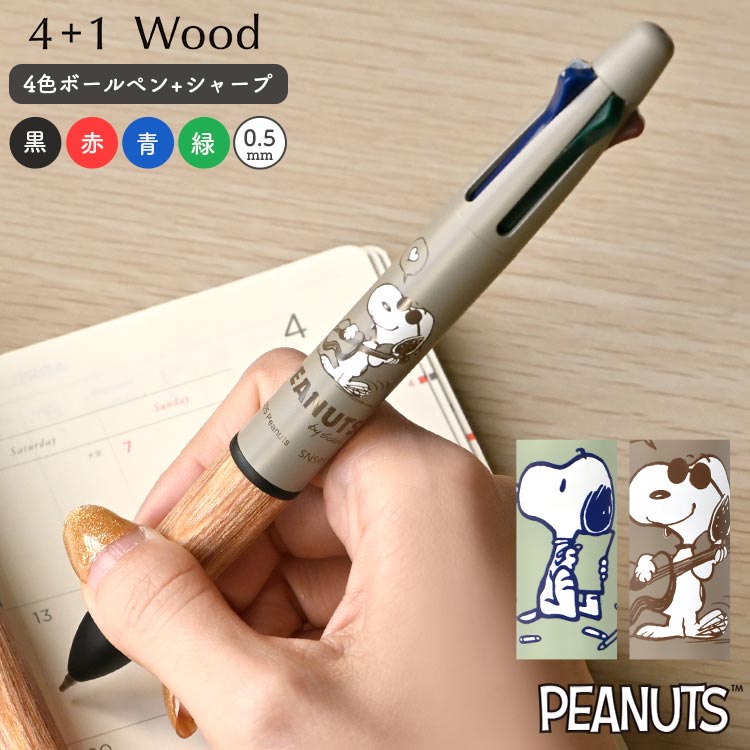 パイロット PILOT 4+1 wood スヌーピー SNOOPY 4色ボールペン 油性 多機能ペン キャラクター シャーペン 0.5mm 木製 木軸 ウッド 日本製 書きやすい 文房具 ステーショナリー 学生 社会人 職場 大人 女性 女子 かわいい おしゃれ グリーン 緑 ベージュ プレゼント ギフト