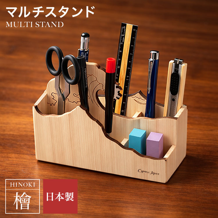 ペン立て おしゃれ かわいい マルチスタンド Cypress Japan サイプレスジャパン 木製 無垢 ヒノキ 檜 富士 波 文具入れ デスク収納 卓上 机上 ペンスタンド リモコンスタンド ギフト プレゼント 筆立 ボックス 鉛筆立て 書斎 整理 整頓 抗菌 消臭 ひのき ウッド 日本製 雑貨