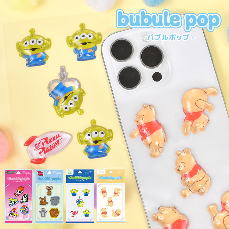 バブルポップ シール ステッカー ぷっくり ツヤツヤ ディズニー プーさん エイリアン トムとジェリー パワーパフガールズ かわいい 大きい 立体 bubble pop キャラクター ポップ モバイルステッカー 3Dシール トイストーリー パワパフ トムジェリ デコレーション グッズ