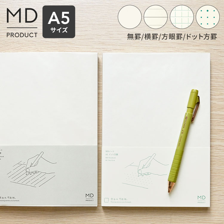 MDノート A5 ノート 無地 罫線 横罫 方眼罫 ドット方眼 文具 文房具 おしゃれ かわいい シンプル a5ノート ビジネス 仕事 会議ノート スケジュール 自由 日記 イラスト 絵日記 水平開き 白紙 ギフト プレゼント midori ミドリ 日本製 MDプロダクト 15384006 クリーム色 上質