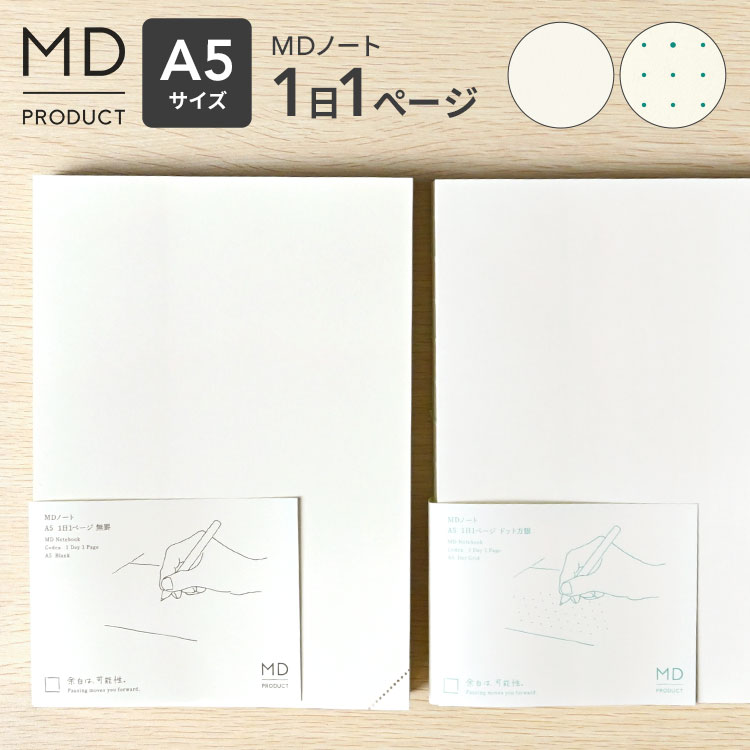 MDノート A5 1日1ページ ノート 無地 ドット方眼 文具 文房具 おしゃれ かわいい シンプル a5ノート スケジュール 日記 イラスト 絵日記 デイリーログ 振り返りノート 記録 水平開き 白紙 ギフト プレゼント midori ミドリ 日本製 MDプロダクト 15389006 クリーム色 上質