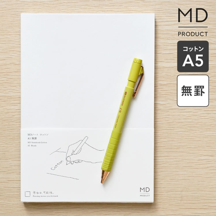 MDノート A5 コットン ノート 無地 無罫 文具 文房具 おしゃれ かわいい シンプル a5ノート ビジネス 仕事 会議ノート スケジュール 自由 日記 イラスト 絵日記 スケッチ 水平開き 白紙 ギフト プレゼント 大人 midori ミドリ 日本製 MDプロダクト 15392006 ホワイト 白 上質