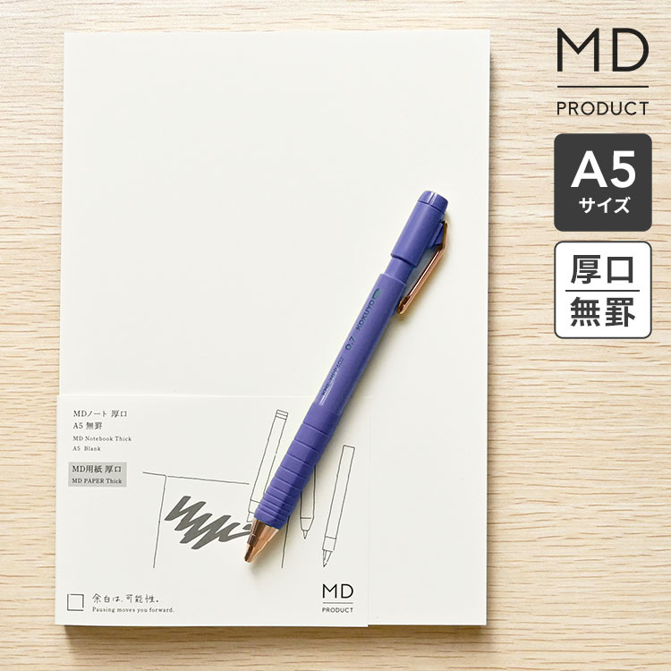 MDノート A5 厚口 ノート 無地 無罫 文具 文房具 おしゃれ かわいい シンプル a5ノート ビジネス 仕事 会議ノート スケジュール 自由 日記 イラスト スケッチ 絵日記 水平開き 白紙 ギフト プレゼント お祝い midori ミドリ 日本製 MDプロダクト 15350006 クリーム色 上質