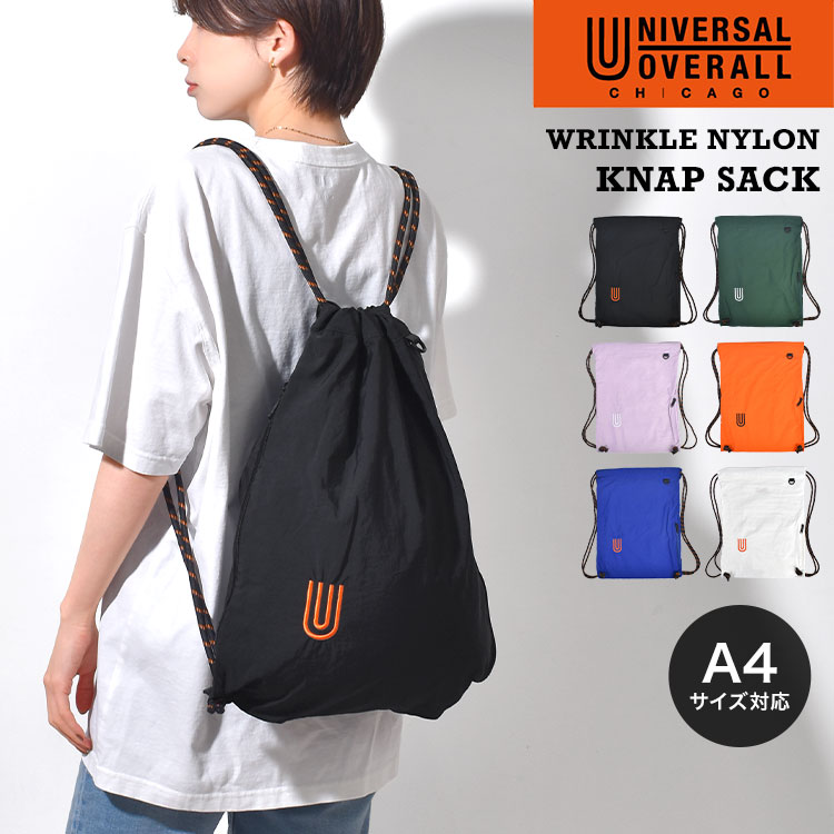 ナップサック ユニバーサルオーバーオール UNIVERSAL OVERALL UVO-245 メンズ レディース 大人 ブランド A4収納 軽量 大きめ ポケット付き ナップザック ジムバッグ ジムサック サブバッグ リュック ナイロン 丈夫 シンプル おしゃれ アウトドア スポーツ ストリート フェス