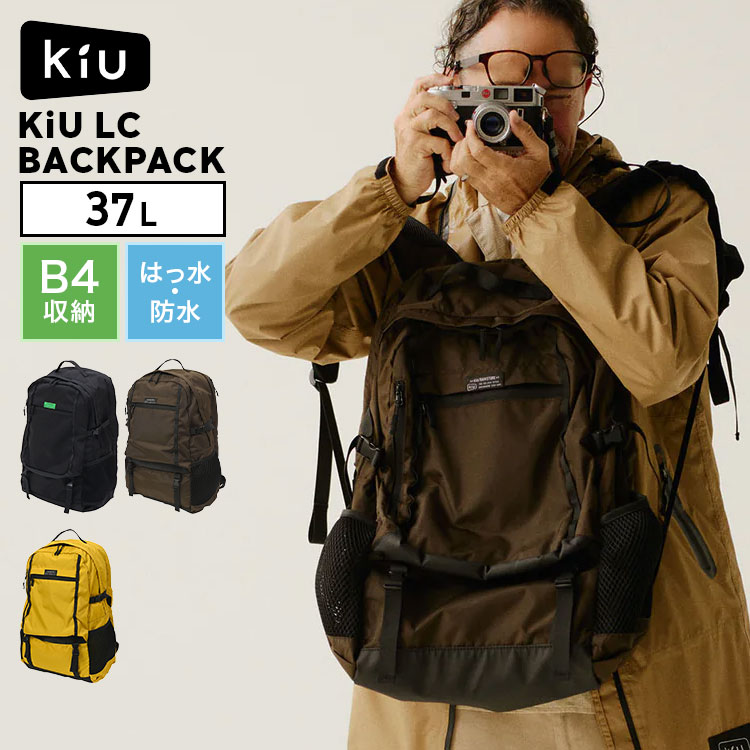 LC バックパック KiU キウ K448 レディース メンズ 大容量 軽量 大きめ 撥水 防水 B4 37L 17インチ PC収納 ポケット 多い リュックサック デイパック チェストベルト デイジーチェーン ナイロン おしゃれ ブラック イエロー ブラウン 通勤 通学 高校生 旅行 アウトドア 登山