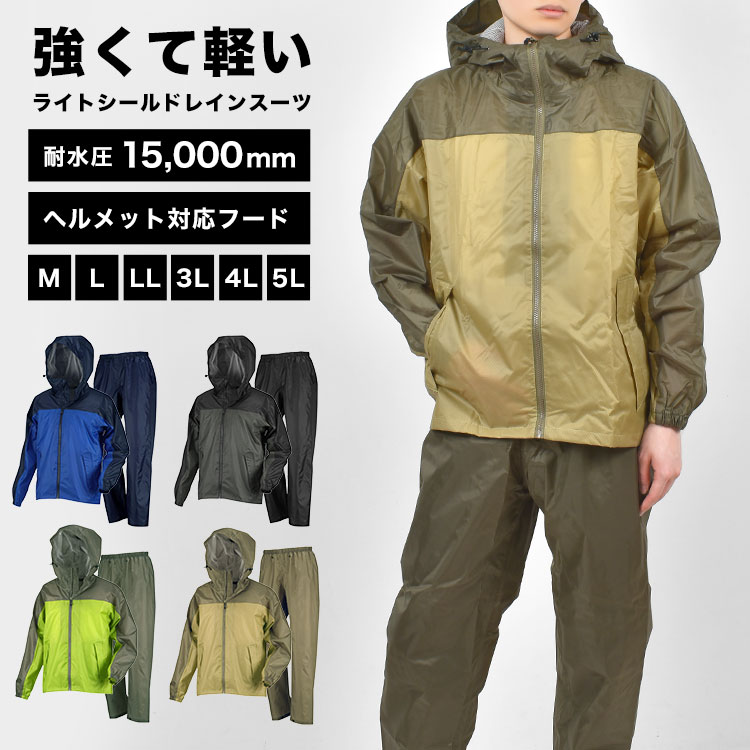 レインウェア 上下セット メンズ レインスーツ 自転車 通学 通勤 ヘルメット対応 フード付き 雨具 カッパ セットアップ ヤッケ 裏メッシュ 防水 耐水 軽量 作業着 作業服 現場 仕事着 アウトドア M L LL 3L 4L 5L 大きいサイズ レインジャケット レインパンツ 3430 カジメイク ライトシールドレインスーツ ウィンドブレーカー レインコート 雨合羽 丈夫 男性 ゴルフ キャンプ 釣り バイク 耐水圧 15000 ライムグリーン ブルー 青 チャコール ベージュ 10代 20代 30代 40代 50代 60代 70代 80代 シンプル かっこいい 別売り 梅雨 梅雨対策 登山 豪雨 台風 おすすめ 人気 自転車通勤 防水パンツ 防水ズボン 裾絞れる 強化生地 工事 防災