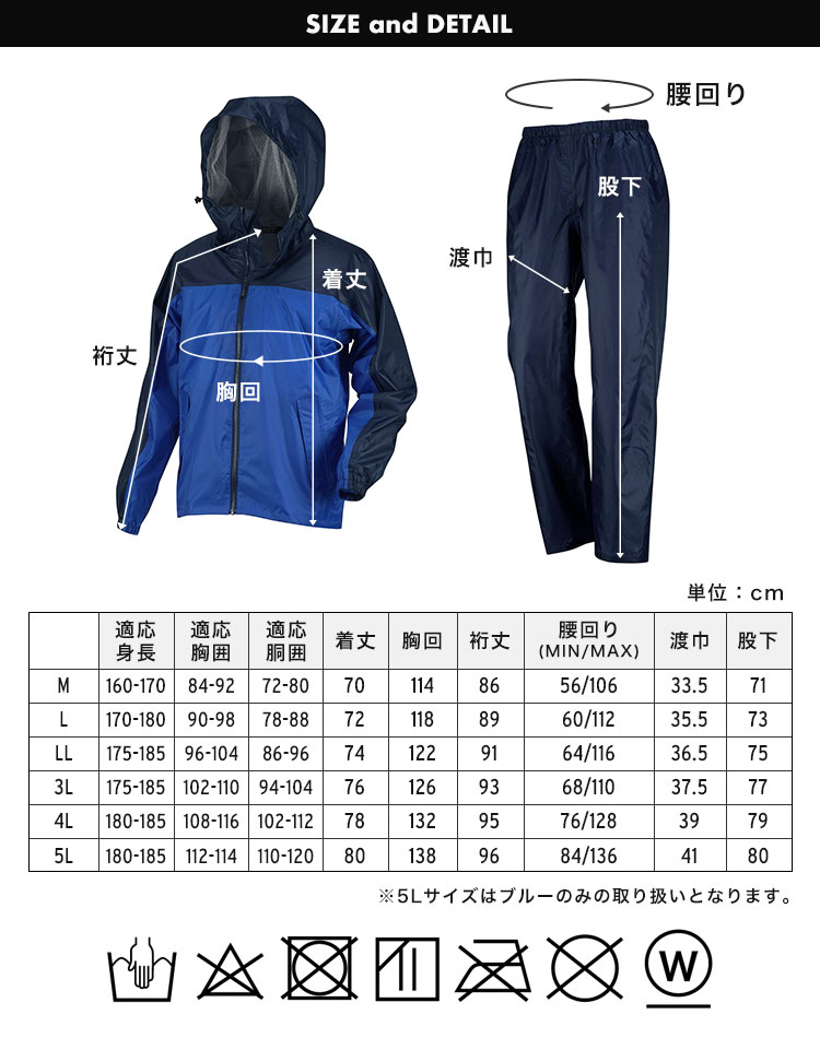 ※5Lサイズはブルーのみの取り扱いとなります。