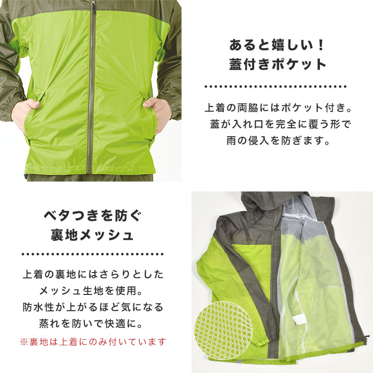 レインウェア レインスーツ 上下 レディース 防水 レインコート おしゃれ 女性 女子 通学 通勤 ゆったり 自転車 バイク パンツ セパレート ズボン レインジャケット 透湿 蒸れにくい 耐水圧 10000 収納袋付き S M L メッシュ 上下セット カッパ 雨合羽 7481 アウトドア 登山