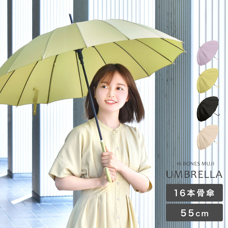 傘 16本骨 レディース ジャンプ傘 長傘 雨傘 おしゃれ かわいい 無地 上品 かさ 女性 シンプル 和風 丈夫 耐風 大雨 55cm メンズ 折れにくい 風に強い 合皮持ち手 ブラック パープル ベージュ ライトグリーン ライム ラベンダー 人気 多骨 通勤 通学 大人 スタイリッシ