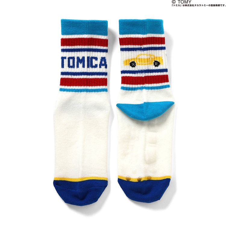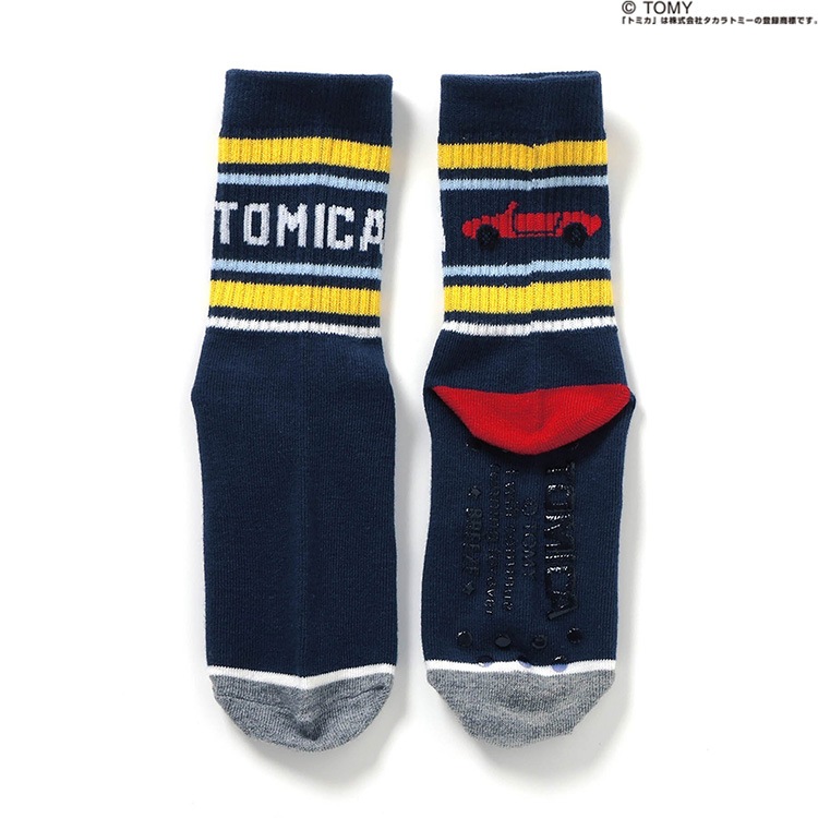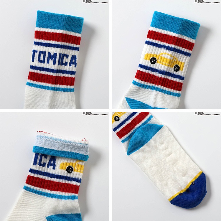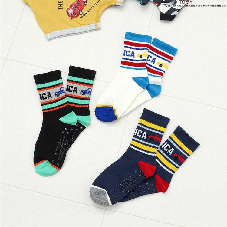 トミカの車柄がかわいい!ソックス3Pセットが登場♪3色すべて違った柄がデザインされており、毎日気分でお好きなソックスを選ぶのも楽しそう!もちろん、きょうだいでおそろいも◎足裏は滑り止め付きで、元気なお子様も安心です。