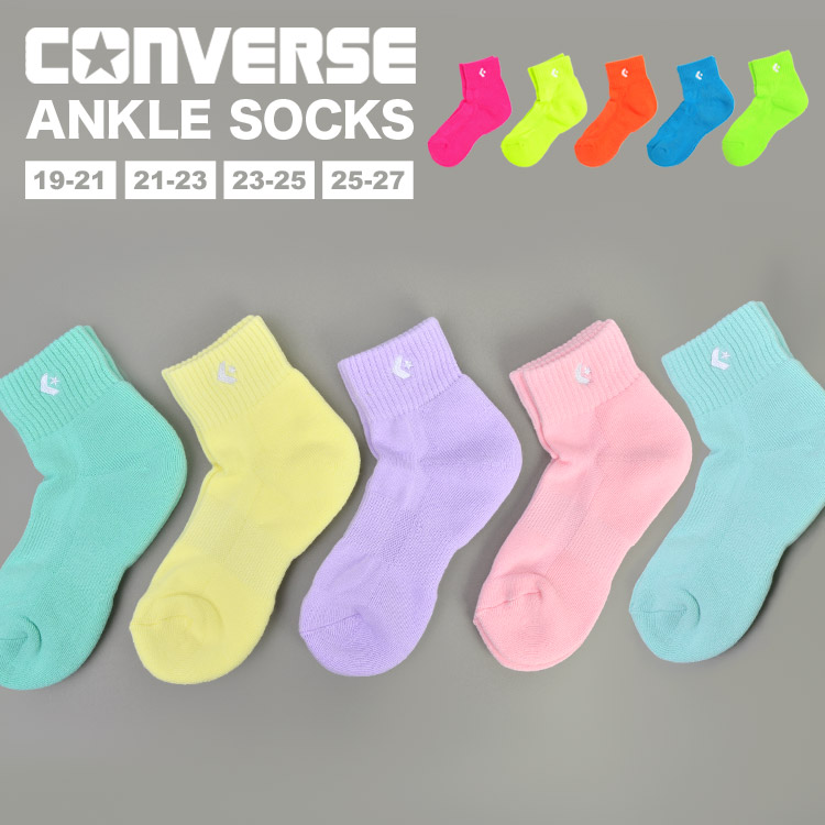 ソックス 靴下 CONVERSE コンバース キッズ スポーツ ソックス ショート クルー ソックス 派手 レディース カラフル ネオンカラー パステルカラー くつした くつ下 スニーカー クラブ 部活 通学 ジュニア 小学生 運動会 目立つ 中学生 高校生 バスケットボール ミニバス