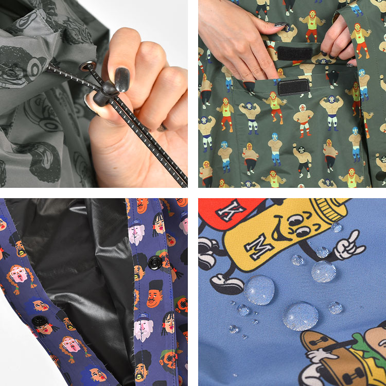 長靴のときもそうだった、外に出たくない日を出たくなる日に変えてくれたアイテム!派手過ぎずタウンユースにもフェスシーンにもはまる総柄デザイン。ボタンをフルオープンにすると、敷物としても使っていただけます。雨のなか自転車を漕ぐ日にも役立ってくれそうです!